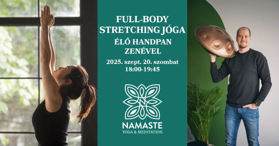 Élőzenés jógagyakorlás a Namaste Stúdióban | szeptember 20. A Namaste Yoga & Meditation szeptember 20-án dinamikus, egész testet átmozgató jógagyakorlásra várja az érdeklődőket Biatorbágyon. A vinyászákkal és könnyítésekkel tarkított órát Kanizsár Dorka vezeti, míg Kuritár Csaba élő handpan zenéje különleges atmoszférát teremt a gyakorláshoz. A foglalkozás kis csoportban, 4–10 fő részvételével zajlik, így mindenki személyes figyelemben részesülhet, miközben elmélyülhet a mozgás és a zene összhangjában.