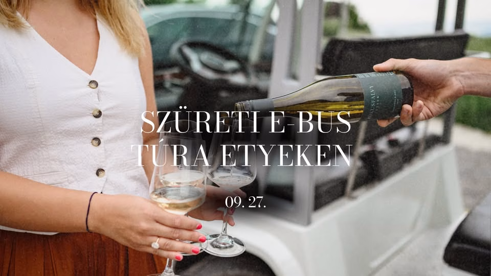 Szüreti e-bus túra Etyeken | szeptember 27. Ha igazán különleges módon szeretnéd átélni az etyeki szüret hangulatát, akkor ne hagyd ki ezt az élményt a Rókusfalvy Birtok jóvoltából: szeptember végén e-busz visz végig Etyek legszebb részein. Az út során bepillantást nyerhetsz a régi sváb hagyományok világába, a szüreti időszak varázslatos hangulatába és a festői szőlőhegyekbe. A program három válogatott Rókusfalvy bor kóstolójával egészül ki, melyek tökéletesen hozzák vissza a táj ízeit és karakterét.