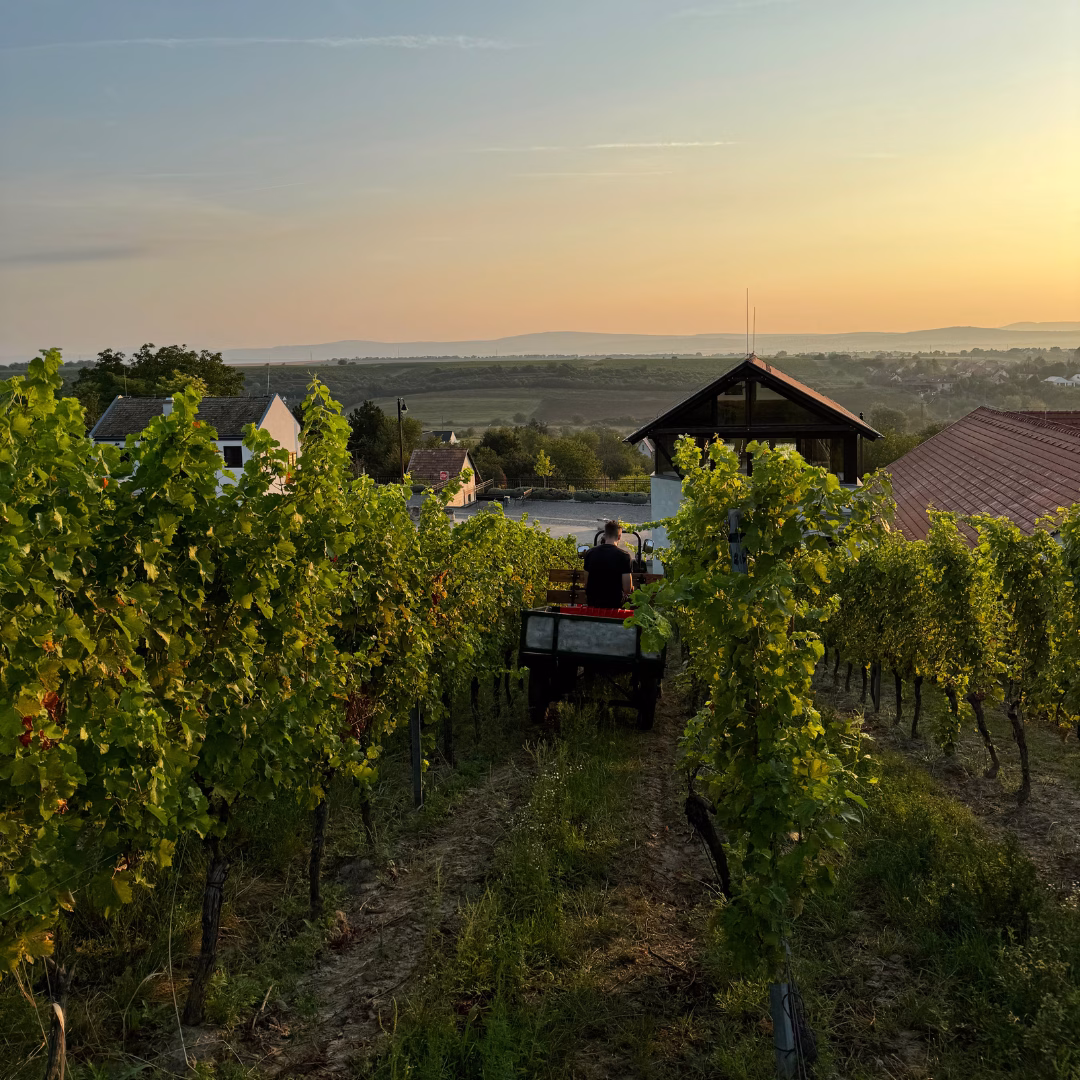A szüreti napok most egészen más hangulatban telnek. Van idő beszélgetni a sorok között, megállni egy pillanatra, és élvezni a must illatát, ami lassan átjárja a pincét. Néha úgy érezzük, maga az ősz is ráérősebb, nyugodtabb, mint tavaly: a reggelek hűvösek, a délutánok melegen aranylók, és minden nap újabb, apró örömöket tartogat.